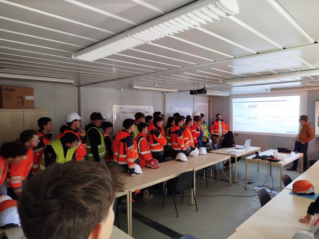 Cette visite a permis aux élèves et apprentis de mesurer la diversité des tâches nécessaires à la réalisation d’un échangeur routier et de mieux appréhender les différents métiers des travaux publics.