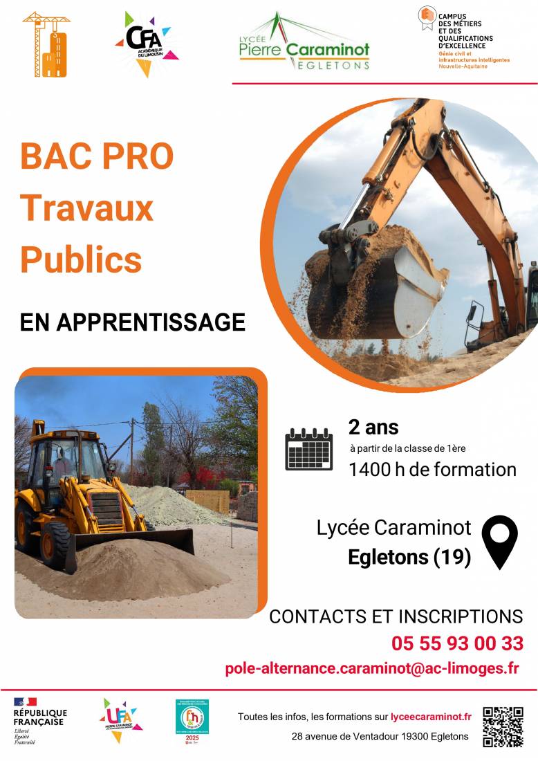 >>Voir la fiche de présentation du Bac Professionnel Travaux Publics en Apprentissage<<