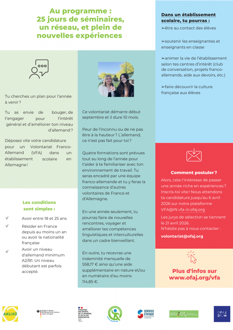 Volontariat au sein des établissements scoalires en Allemagne -10 mois à partir de septembre 2026